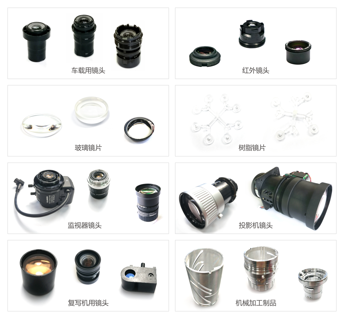 車(chē)載用鏡頭/紅外鏡頭/玻璃鏡片/樹(shù)脂鏡片/監視器鏡頭/投影機鏡頭/復寫(xiě)機用鏡頭/機械加工制品